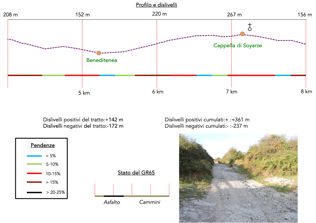 Indicazione generale delle difficoltà del percorso: discesa ripida poi salita spesso impegnativa e lunga verso la cappella.