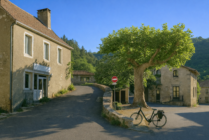 En-dessous, Cabrerets se fait plus petit et disparaît progressivement derrière les feuillages. Le sentier devient presque un couloir secret, où la lumière joue à cache-cache avec les feuilles. Les buis sentent le soleil et la terre sèche, les chênes dressent leurs bras noueux comme pour nous protéger. En contrebas, le village se réduit à un simple décor, un jouet miniature perdu dans l’écrin vert de la vallée, tandis que vos pas s’élancent vers l’inconnu.