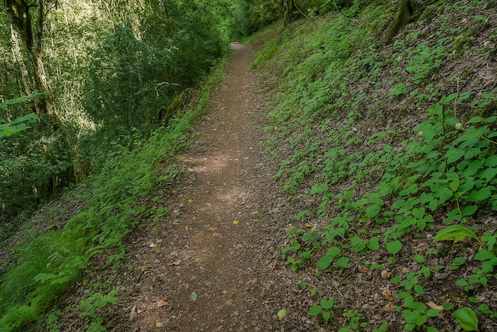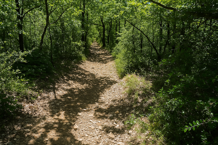 Plus loin, le chemin s’enfonce progressivement dans le sous-bois, qui devient plus dense.