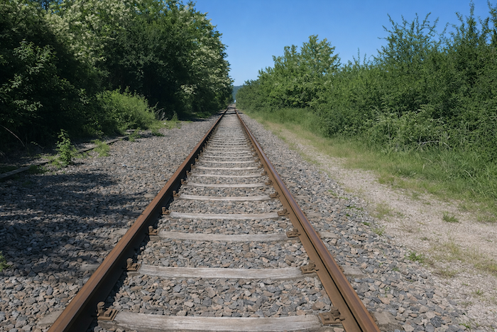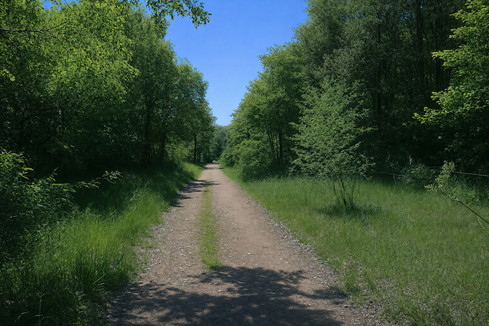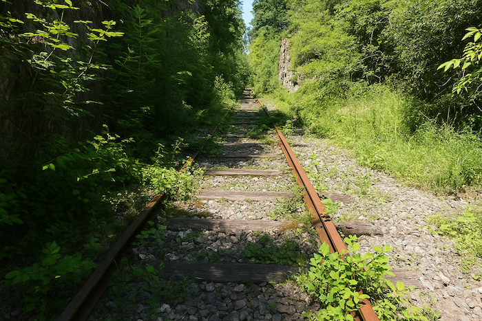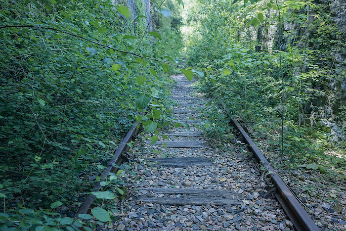 État du parcours : Ici, on marchera surtout sur des chemins, voire pour certains sur de vieux rails de chemins de fer :