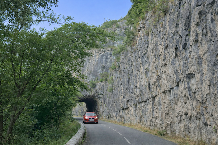 La route, désormais, déroule son ruban sous la falaise. Les parois ruissellent d’ombres et de lumière, offrant aux promeneurs la sensation d’être minuscules au pied de ces murailles.