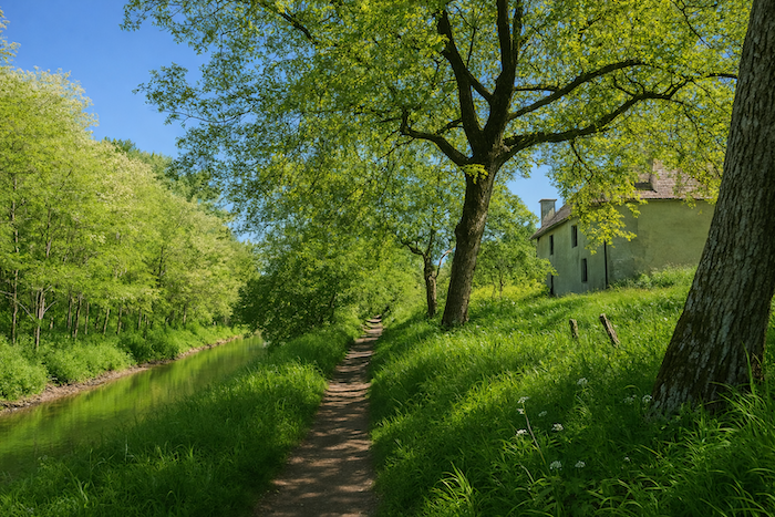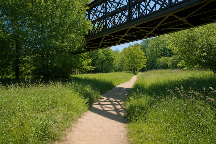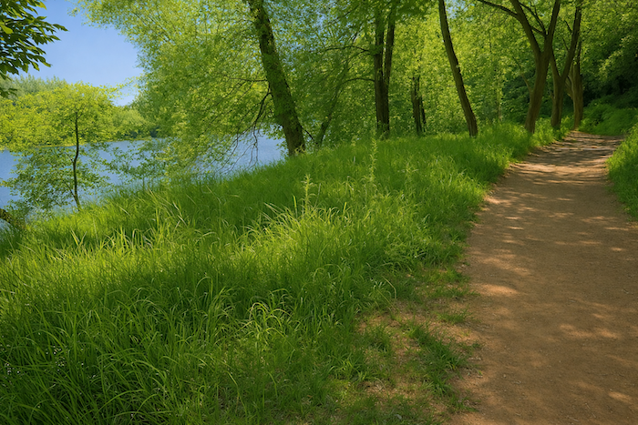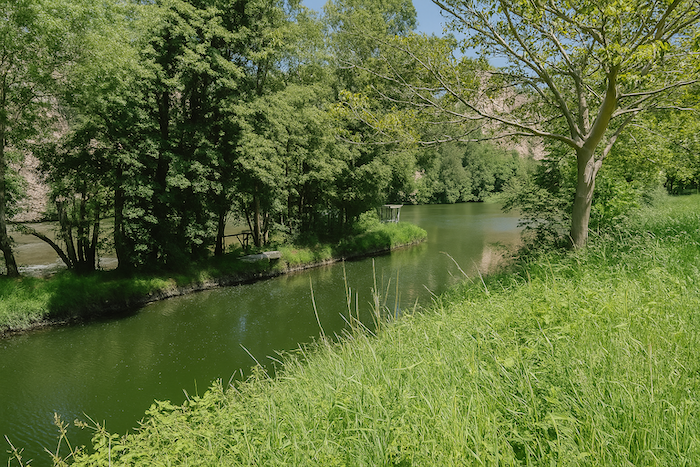 Par endroits, il s’écarte pour longer les canaux de dérivation. Car ici, le fleuve a ses humeurs : brusques montées, reflux, remous imprévisibles. Les écluses en sont les gardiennes patientes. Le marcheur longe alors une galerie végétale : peupliers argentés, robiniers tordus, aulnes glutineux, frênes graciles, et faux roseaux qui s’inclinent au vent. Parfois, les troncs se penchent sur l’eau comme pour y tremper leurs feuilles.