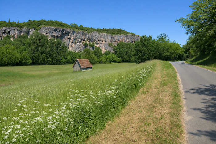 Pour gagner Bouziès, il n’est hélas qu’une solution, à savoir marcher sur le grand axe de la D662, la route départementale qui va de Cajarc à Cahors.