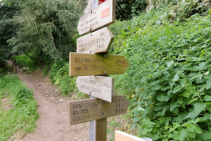 Puis vient une bifurcation.  Là, deux options : suivre la route et grimper tranquillement plus loin jusqu’à St Cirq-Lapopie, avec le flux des touristes qui montent du parking au bas du village, ou bien s’élancer sur le sentier des sportifs, raide et vibrant, plus direct. Ceux qui ont affronté les montagnes russes du GR651 dans la vallée du Célé reconnaîtront la cadence : la pente, ici, ne leur fera pas peur.